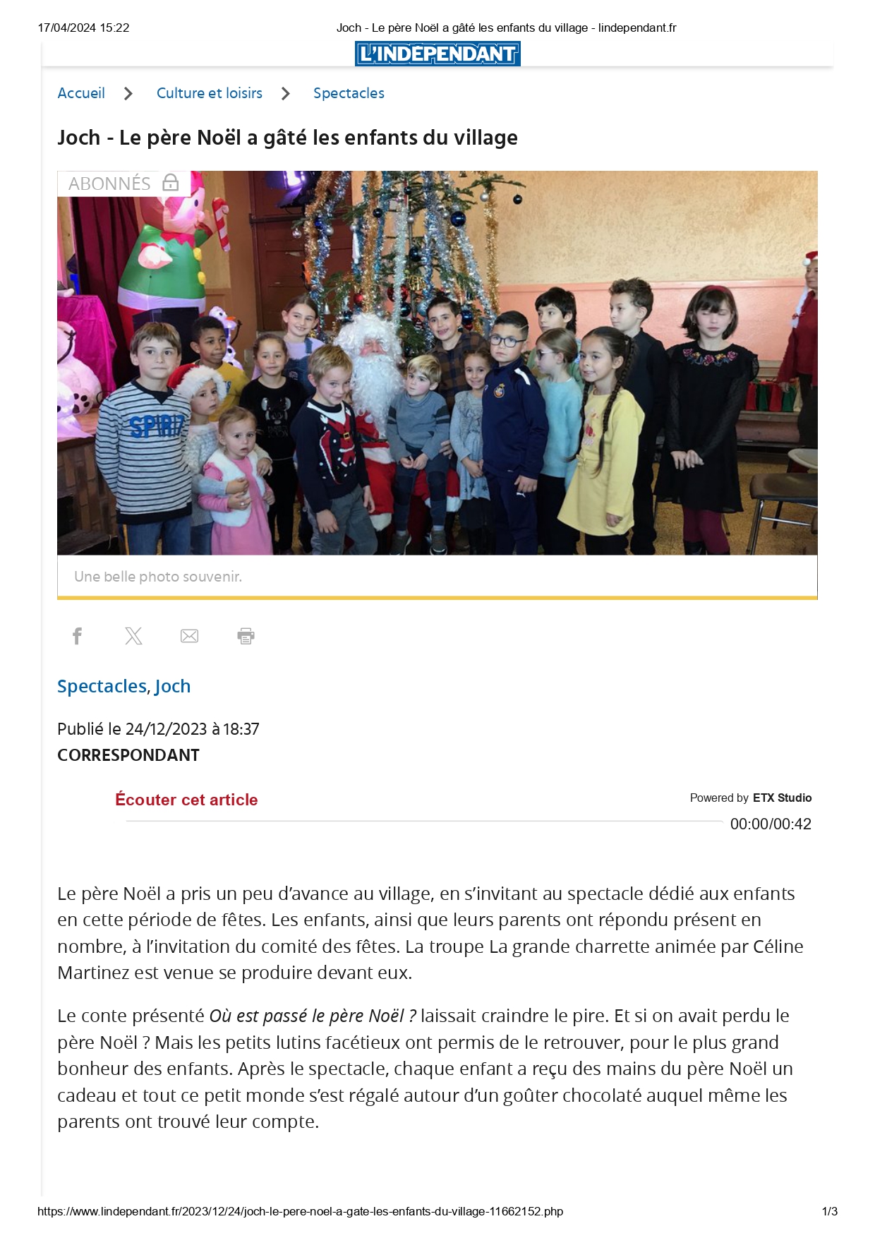 Joch – Le père Noël a gâté les enfants du village – lindependant.fr_page-0001 Publié le 17 avril 2024 par lagrandecharrette